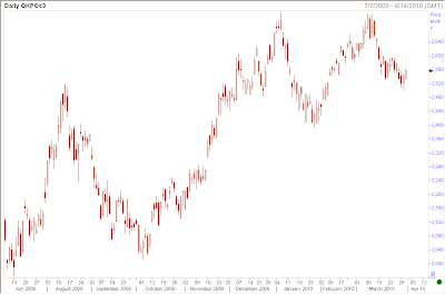 Nothing much changes on the immediate technical landscape despite market defended at 2500 level. Thus, market looks may continue to move sideways to lower in near term. As for now, we continue to look for the upside resistance at 2595-2600. While, immediate downside support is lies at 2500 followed by 2470-2462 (gap left over since 3/2/2010).